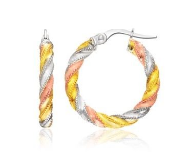 14K Tri-Colour Gold Spiral Twist Circular Hoop Earrings
